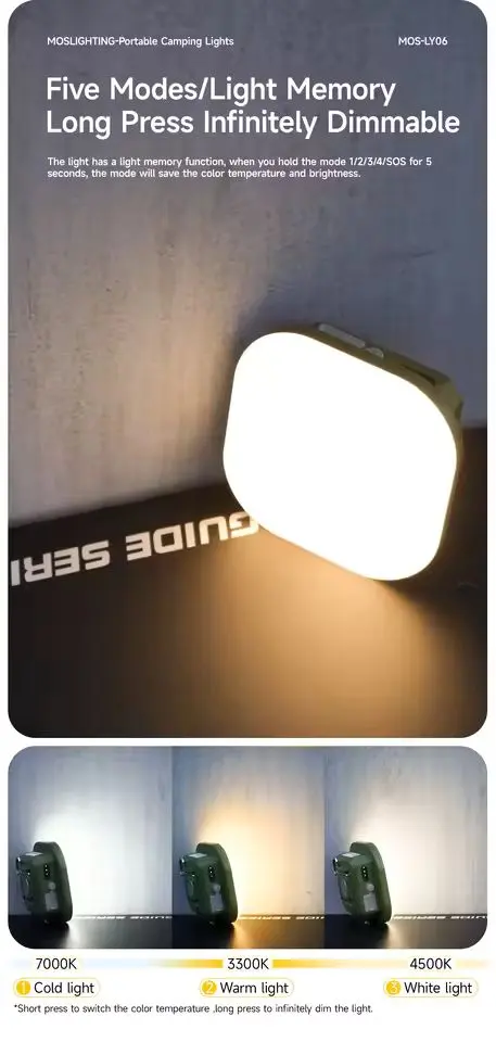 ارتقِ بتجربة التخييم والصيد والرحلات البرية مع فانوس MOS-LY06 المصمم لتحمّل أصعب الظروف وتوفير أقوى إضاءة ممكنة بفضل بطارية ليثيوم 21700 ذات السعة العالية.
