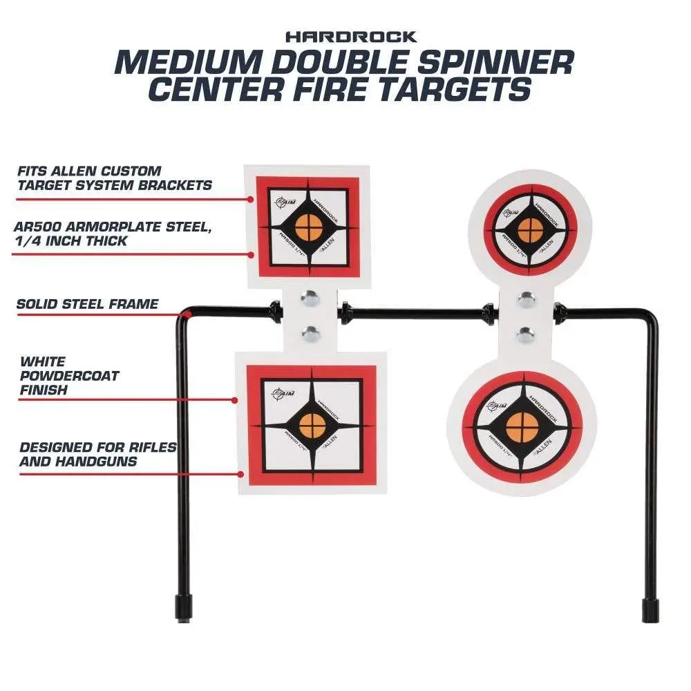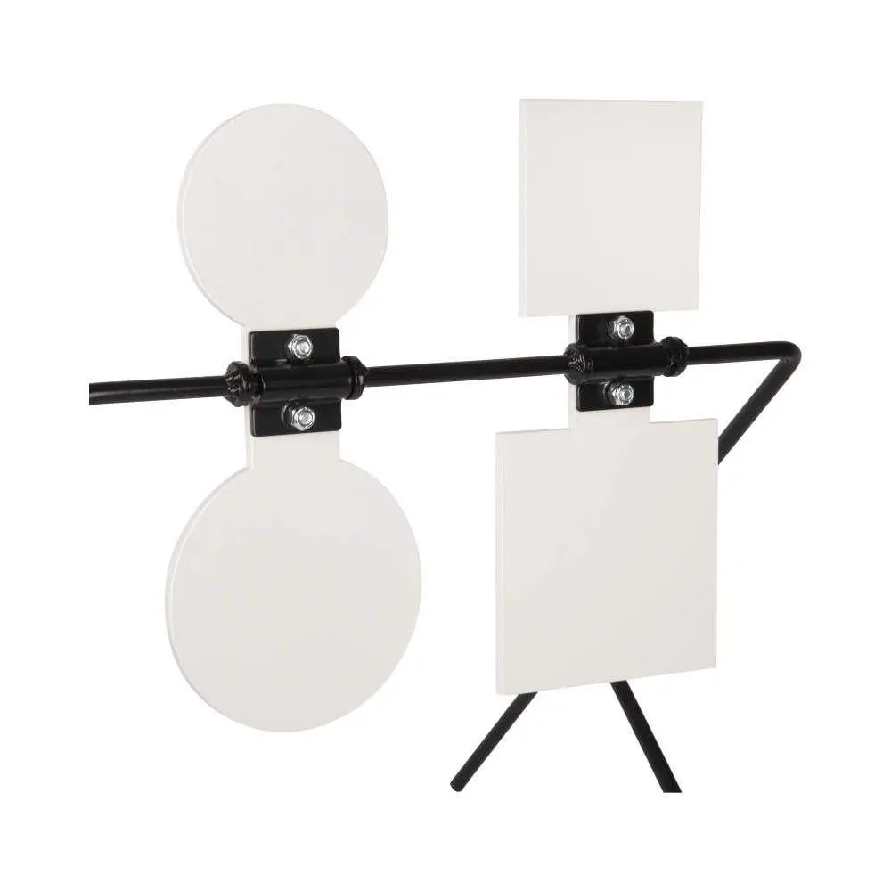 تم تصميم الدوار المزدوج EZ Aim® AR500 Hardrock للاستخدام مع البنادق والمسدسات عالية الطاقة، حيث يُنصح باستخدام المسدسات من مسافة 30 قدمًا والبنادق من مسافة 100 ياردة لضمان أفضل أداء. تصنع الأهداف من ألواح فولاذية مدرعة AR500 بسماكة 1/4 بوصة، وتأتي بحجمين مختلفين: هدف دائري وهدف مربع، لكل منهما هدف علوي بقياس 4 بوصة وهدف سفلي بقياس 5 بوصة. يتميز المنتج بإطار فولاذي متين مع طلاء مسحوق أبيض مقاوم للعوامل الخارجية، كما صُمم ليناسب أقواس نظام Allen Custom Target لتثبيت مثالي.