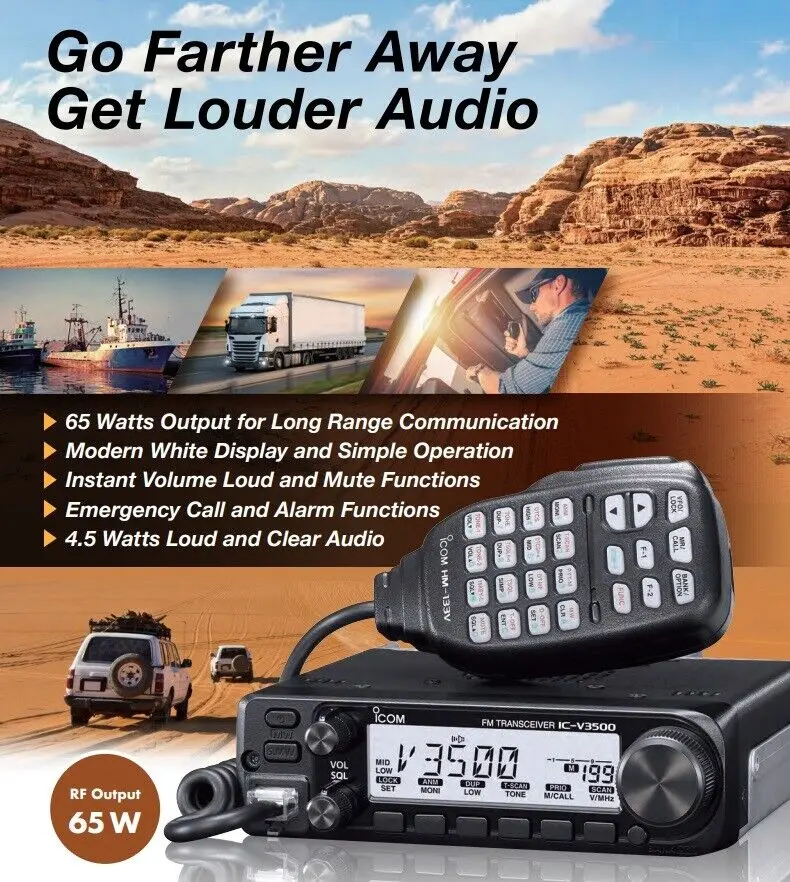 جهاز ICOM IC-V3500 هو الإصدار المطوّر من شركة إيكوم اليابانية، ويُعد من أحدث أجهزة الإرسال والاستقبال، ومصرح به رسميًا من هيئة الاتصالات وتقنية المعلومات في المملكة العربية السعودية.