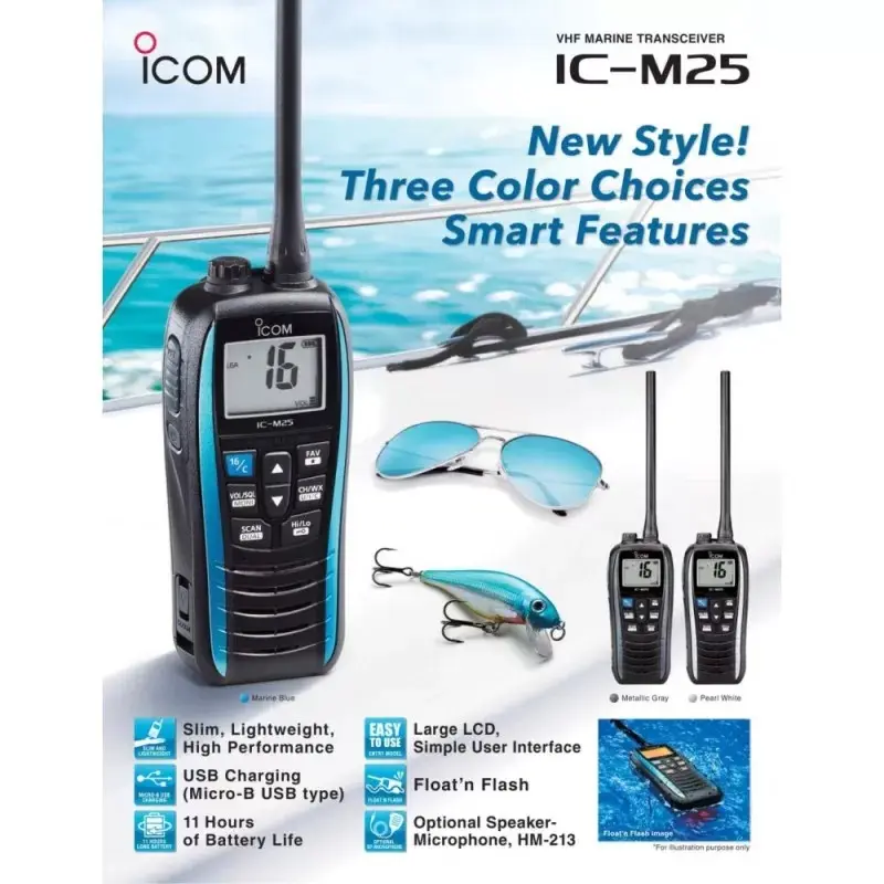 راديو لاسلكي يدوي بحري ICOM IC-M25 EURO VHF هو جهاز اتصالات موثوق وخفيف الوزن، مثالي لجميع الأنشطة البحرية. يتميز بتصميم عائم يطفو على الماء مع وميض ضوئي لتسهيل استعادته في حالات الطوارئ. مع بطارية ليثيوم أيون تدوم حتى 11 ساعة وشحن USB مريح، يوفر الجهاز اتصالًا واضحًا مع مكبر صوت عالي الجودة وتقنيات متقدمة مثل AquaQuake™ لطرد الماء من مكبر الصوت. الجهاز معتمد من هيئة الاتصالات، ويوفر رخصة فورية لتشغيله رسميًا.