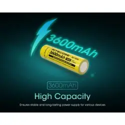 بطارية ليثيوم أيون عالية الكفاءة بسعة 3600 ملي أمبير وجهد 3.6 فولت، مصممة لتوفير طاقة مستقرة وأداء موثوق للأجهزة التي تتطلب طاقة مستمرة مثل الكشافات الاحترافية والمعدات الإلكترونية.