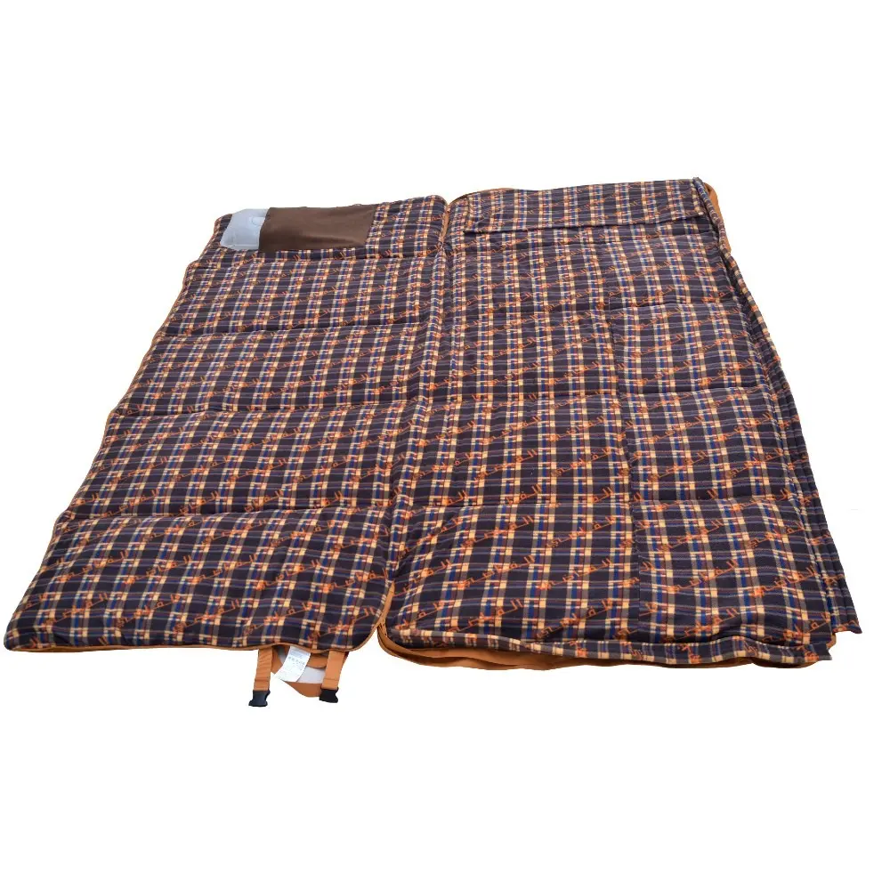 يأتي الفراش بلون خارجي كموني أنيق، وداخلية بنية مزينة بنقشة كاروهات باللون الأزرق لإطلالة شبابية جذابة.