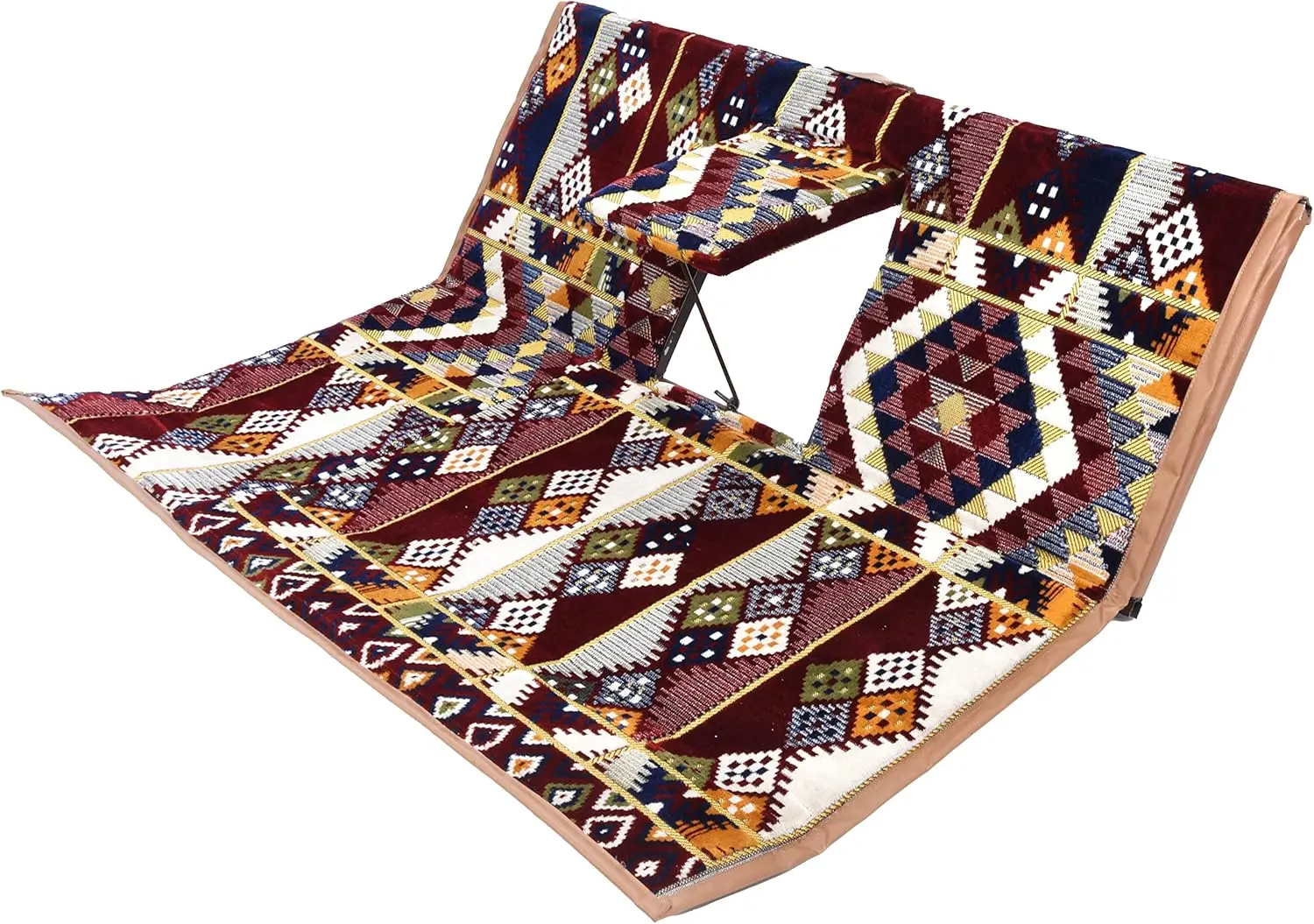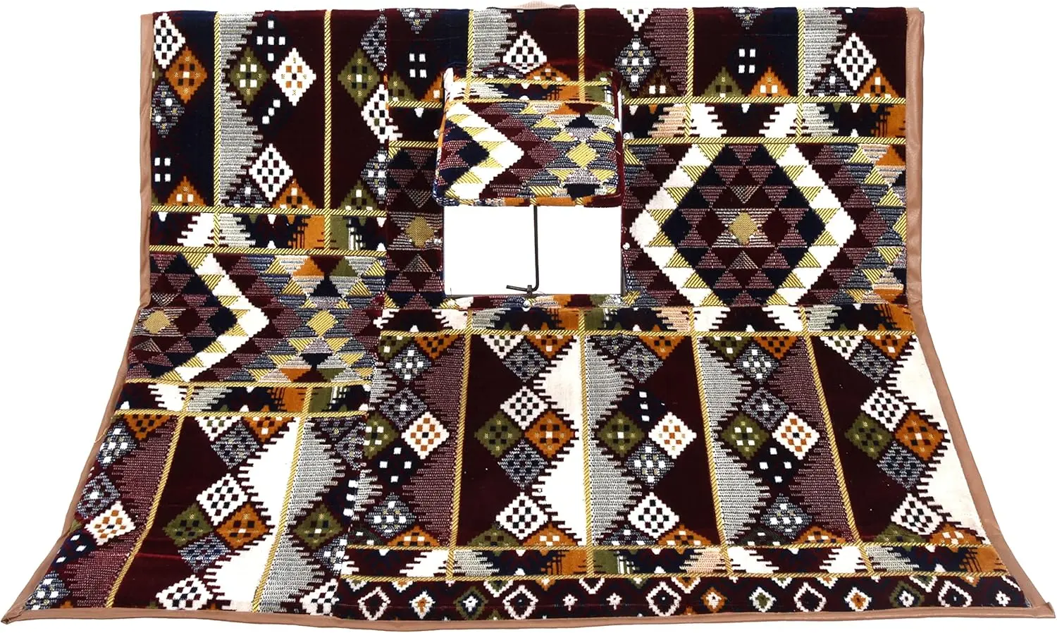 استمتع بجلسة رحلات عملية ومريحة مع فرشة أرضية مصممة خصيصًا لتجمع بين الراحة والأناقة في كل مكان. تأتي الفرشة بمساحة مناسبة لشخصين، وتتميز بتكاية (مركى) وسط تمنحك دعماً مريحاً للظهر وراحة مثالية أثناء الجلوس لفترات طويلة.