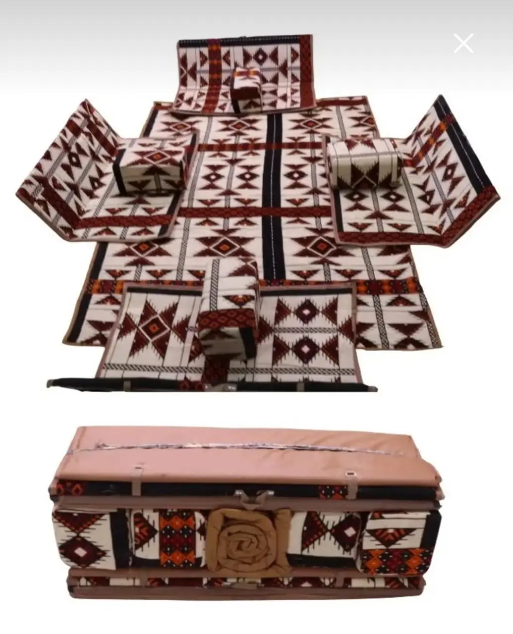 جلسة أرضية تراثية قابلة للطي – 4 قطع | مناسبة للبر، الرحلات، والتخييم
