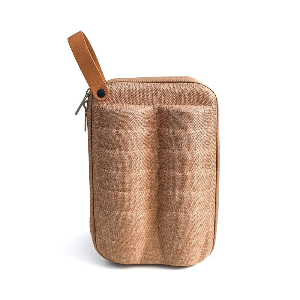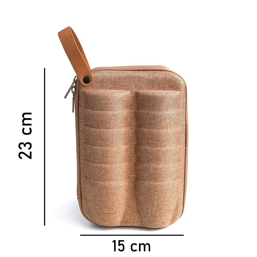 شنطة قماش متينة مصممة خصيصًا لحفظ 12 استكانة بشكل آمن ومنظم. تأتي بلون خشبي أنيق يناسب جميع الاستخدامات، سواء في التنقل أو التخزين المنزلي. تتميز الشنطة بخفة وزنها حيث تبلغ 208 جرام فقط، مما يجعل حملها سهلاً ومريحًا.