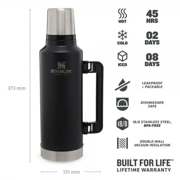 تقدم لك ستانلي حافظة المشروبات بسعة 1.9 لتر، المصممة لتحمل أقسى الظروف. بفضل تقنية العزل الفراغي مزدوج الجدار، ستحافظ على مشروباتك ساخنة لمدة 24 ساعة، باردة لمدة 48 ساعة، ومثلجة حتى 8 أيام.