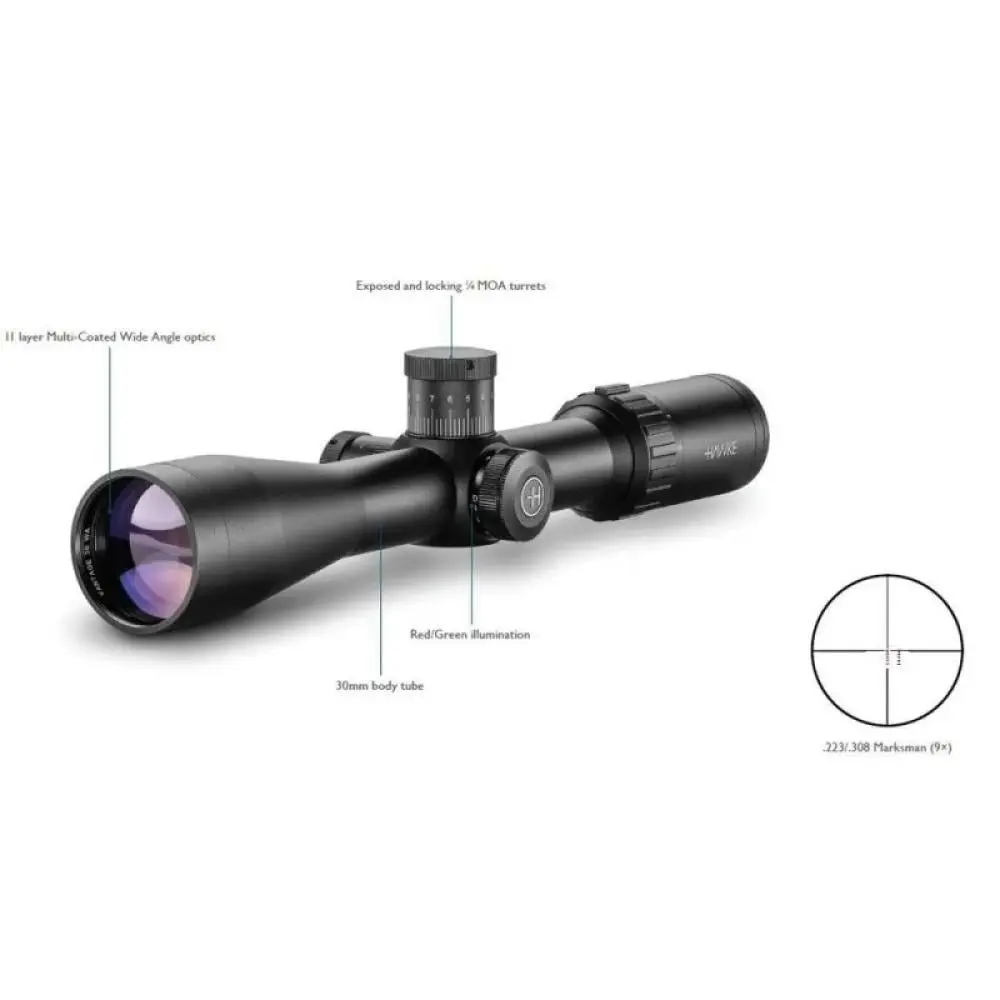 دربيل HAWKE Vantage IR 4-12×42 (.223/.308, موديل 14278) مصمّم للرامي والمحترف الذي يحتاج إلى حل بصري مرن ودقيق للتعامل مع أعيرة .223 و.308. يوفر نطاق تكبير 4×–12× وعدسة أمامية 42 ملم لالتقاط ضوء أفضل ووضوح أعلى في ظروف الإضاءة المتغيرة.