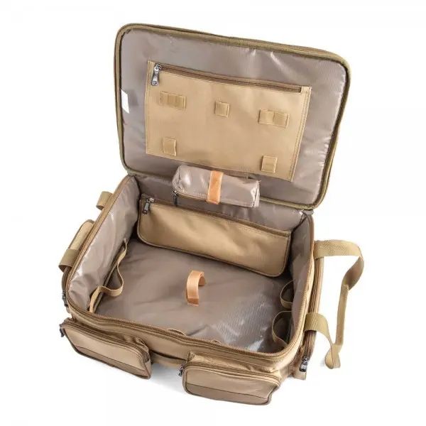 تأتي الحقيبة بلون رملي جذاب وبمقاس عملي 45×34×22 سم، لتوفر لك مساحة واسعة لتخزين أغراضك بشكل منظم ومرن حسب حاجتك.