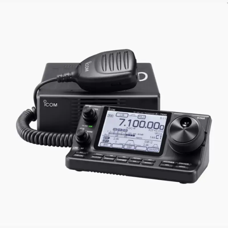 جهاز ICOM IC-7100 هو محطة راديو متكاملة لهواة اللاسلكي، تجمع بين التكنولوجيا المتقدمة وسهولة التشغيل. بفضل شاشة اللمس المقاومة بحجم مميز، ودعمه لتقنية D-STAR الرقمية، وتصميمه المرن، يقدم لك تجربة تواصل استثنائية عبر نطاقات HF وVHF وUHF.
