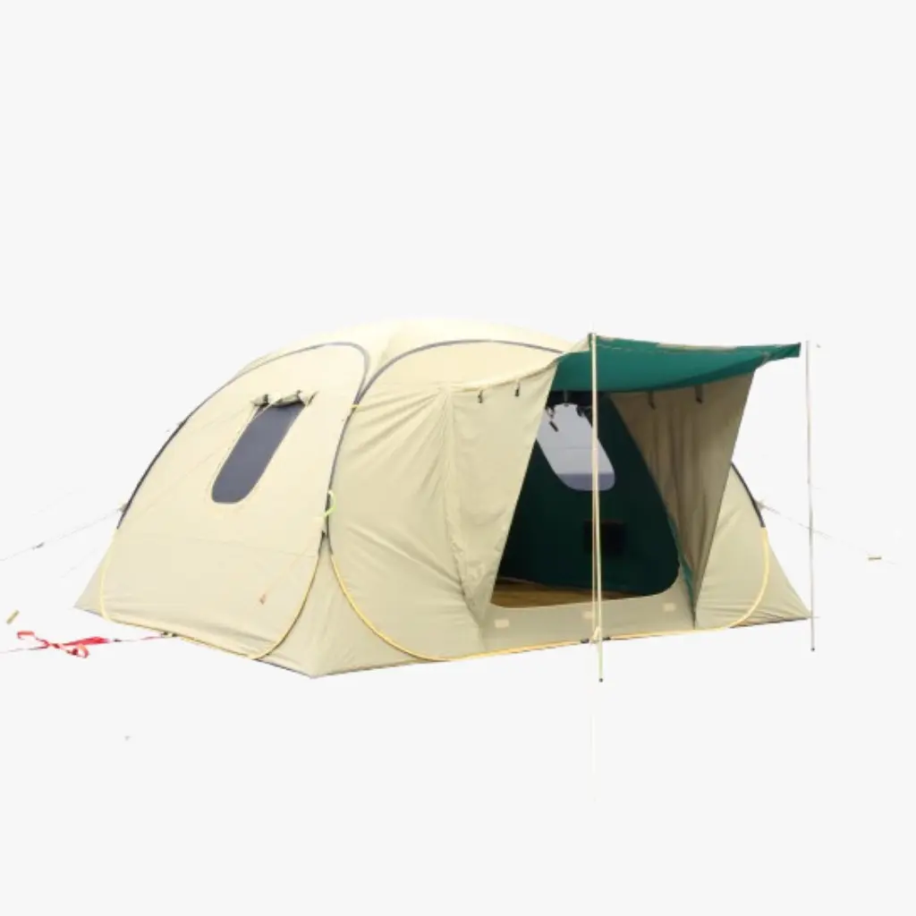 خيمة بطبقتين مصنوعة من خامات عالية الجودة من القطن والبوليستر، توفر الحماية والعزل في مختلف الظروف الجوية.