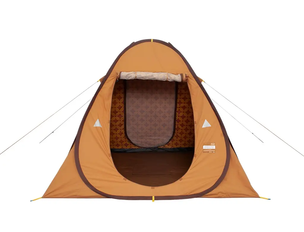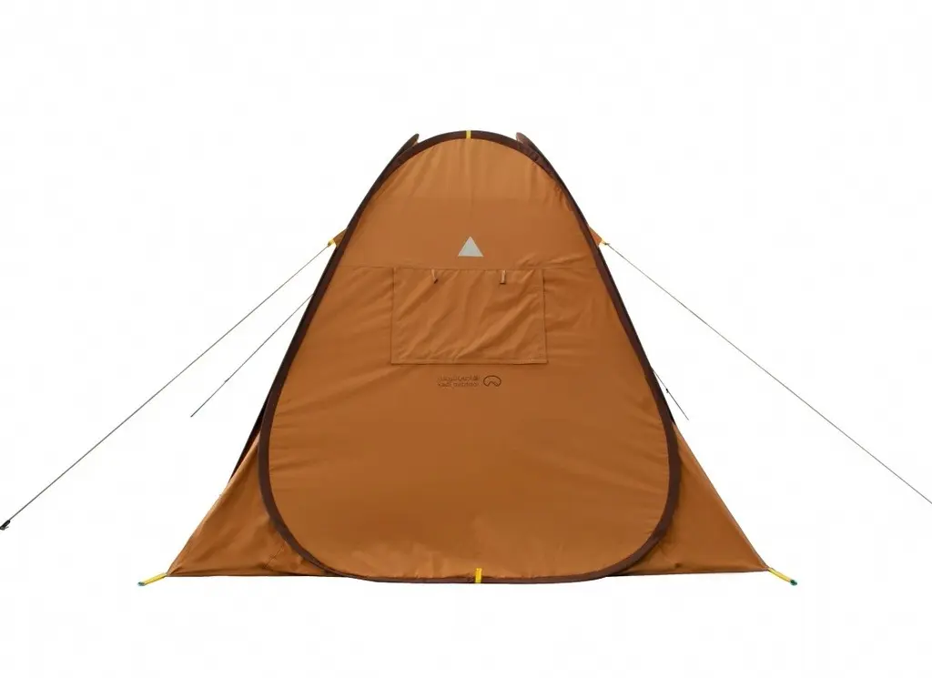 تتميز الخيمة بطبقتين من القطن والبوليستر لعزل معتدل وتهوية ممتازة، مع تصميم داخلي جذاب باللون الأصفر المشجّر.