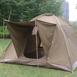 خيمة رحلات فاخرة بمقاس واسع 320×280×180 سم، تمنحك راحة واستقرارًا مثاليين في جميع مغامراتك البرية. مصنوعة من شراع أكسفورد خارجي مقاوم للماء مع أرضية بلاستيكية متينة للحماية الكاملة من الرطوبة. هيكلها المتين من ألياف زجاجية وأنابيب معدنية يجمع بين الصلابة والخفة، كما تأتي مع جراب مضاد للماء لسهولة الحمل والتخزين. بلون بني أنيق ينسجم مع أجواء الطبيعة، لتجربة تخييم تجمع بين الراحة والمتانة.