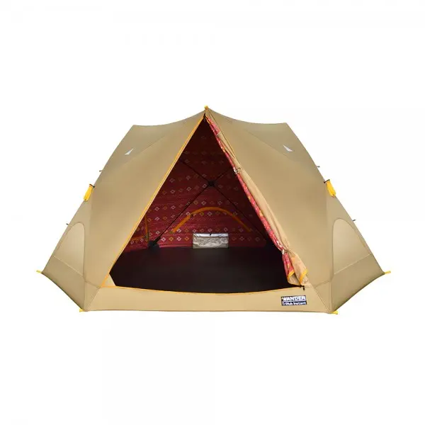 مزودة بـ 3 مداخل شبكية مقوّاة تسمح بتهوية مثالية وتمنع دخول الحشرات، بتصميم هندسي أنيق بلون صحراوي ينسجم مع أجواء الطبيعة.