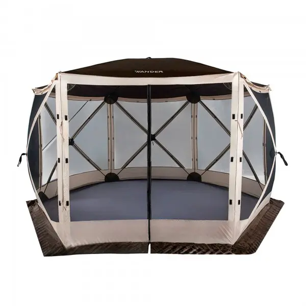 توفر مساحة داخلية رحبة بأبعاد 366×366×218 سم تتسع لـ 8–10 أشخاص، مع جوانب قابلة للإزالة ونظام شد جانبي لضمان الثبات الكامل حتى في الظروف الصعبة.