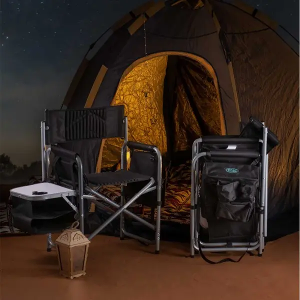 اختبر الراحة والمتانة في رحلاتك مع كرسي الرماية الأسود القابل للطي!