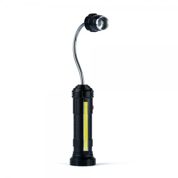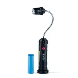 كشاف LED-T6 عملي بإنارة مزدوجة تجمع بين عدسة T6 القوية (450 لومن) ومصدر COB المنتشر (350 لومن) لتمنحك ضوءًا مركزًا وموزعًا حسب الحاجة.