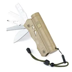 أداة متعددة الاستخدامات تجمع بين كشاف إضاءة قوي بسطوع 50 لومن ومجموعة من الأدوات العملية اليومية في تصميم واحد مدمج وأنيق.
