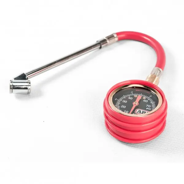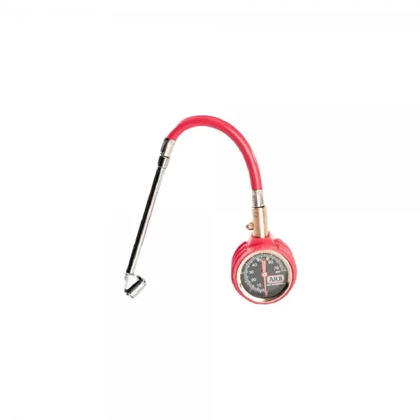 مقياس ضغط الهواء ARB ARB506 مزود بفوهة مزدوجة وغطاء مطاطي قوي لحماية عالية من الصدمات. يتيح لك قراءة دقيقة ومزدوجة لضغط الإطارات بوحدتي PSI والبار، مع خرطوم مرن وشوكة مزدوجة تناسب جميع أنواع الصمامات والجنط. يتميز بزر إعادة ضبط سريع وقرص صغير يسهل استخدامه، مما يجعله أداة مثالية لمتابعة ضغط الهواء بدقة وسهولة في كل الظروف.