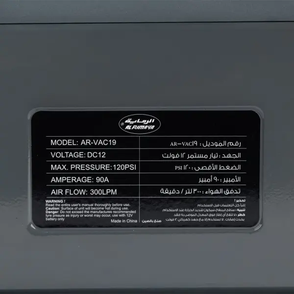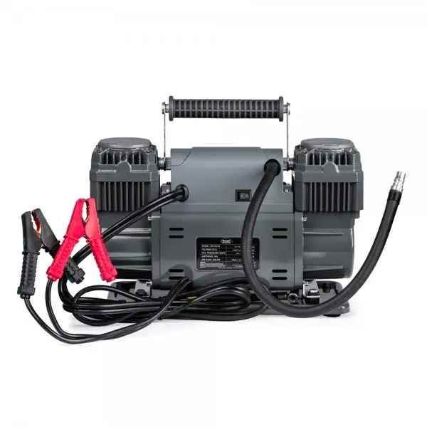 منفاخ هواء قوي وعالي الأداء مزود بنظام حماية متقدم ضد ارتفاع الحرارة، مثالي لسيارات الدفع الرباعي والدراجات النارية والعادية. يعمل بجهد 12 فولت ويقدم ضغط هواء يصل إلى 120 PSI مع تدفق هواء ممتاز 300 لتر/دقيقة. يتميز بخرطوم طويل 8 أمتار وكابل كهربائي 1.8 متر مما يمنحه مرونة كبيرة في الاستخدام. مزود بأسطوانتين متزامنتين لتقليل الضجيج وتحقيق نفخ سريع ودقيق للإطارات في أقل من دقيقتين. يأتي مع حقيبة لحفظه وحماية مكوناته، مما يجعله رفيقك الأمثل في الرحلات والطرق الوعرة.