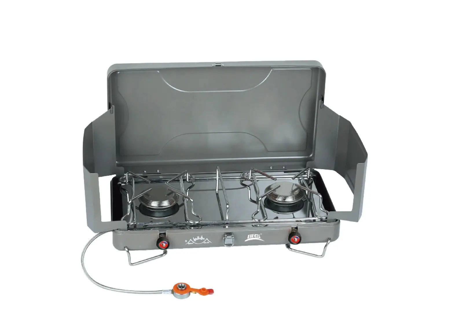 يعمل باستخدام غاز البترول المسال (LPG) ويقدّم تحكمًا دقيقًا بالشعلات للحصول على أفضل نتيجة أثناء الطهي. كما يحتوي على واقيات رياح قابلة للطي، وحوامل أواني مطلية بالكروم لمتانة تدوم طويلاً. يأتي مع شنطة قماش قطنية أنيقة، وضمان صيانة لمدة سنة، مما يجعله موقدًا عمليًا وموثوقًا في أي مكان.