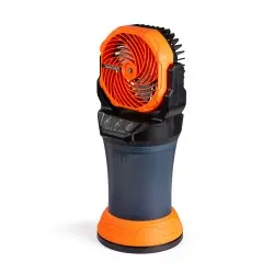 مروحة محمولة متعددة الوظائف تجمع بين التبريد والإضاءة في تصميم عملي ومتين.