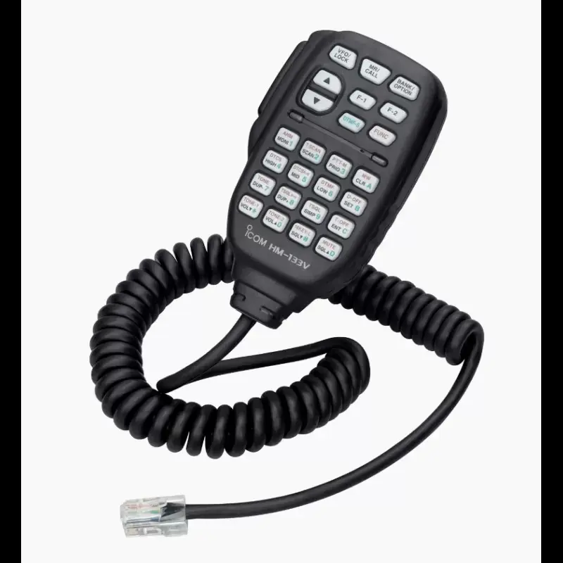 ميكروفون ICOM HM-133V هو المايك الأصلي المصمم خصيصًا لأجهزة ICOM اللاسلكية مثل IC-2300H وIC-V3500 وIC-2100 وIC-8000. يتميز بتصميم متين ولوحة مفاتيح رقمية مدمجة تتيح التحكم السهل في وظائف الجهاز مباشرة من المايك.