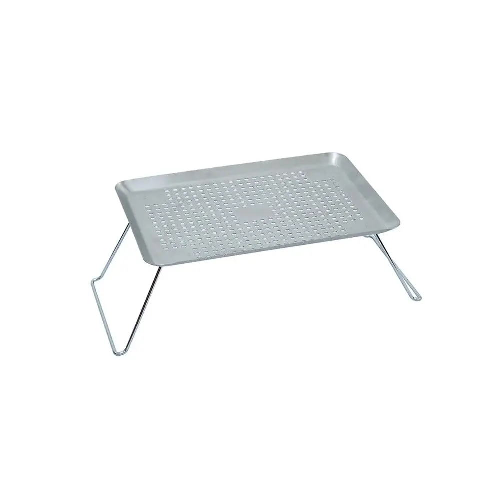صينية تنشيف وسط الحجم بأرجل قابلة للطي من ستانلس ستيل، سهلة التخزين، مع جراب بلون ربيعي لحفظها. مثالية لتنشيف البيالات والأواني