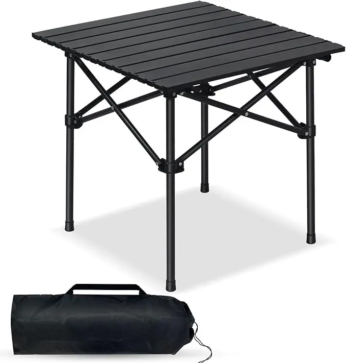 طاولة قابلة للطي وخفيفة الوزن وسهلة الحمل مع سطح من الالومنيوم وشنطة حمل، مثالية للاستخدام في الهواء الطلق والنزهات والتخييم والطبخ والشاطئ والمشي لمسافات طويلة وصيد الاسماك 53×51×50 سم، أسود