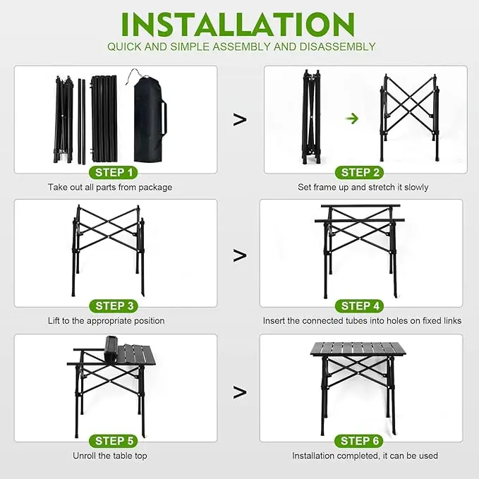 طاولة تخييم ألمنيوم فاخرة قابلة للطي، خفيفة الوزن وسهلة الحمل، مصممة لتوفير أداء عملي وثبات ممتاز في مختلف الأنشطة الخارجية، مع حقيبة حمل أنيقة لسهولة النقل والتخزين.