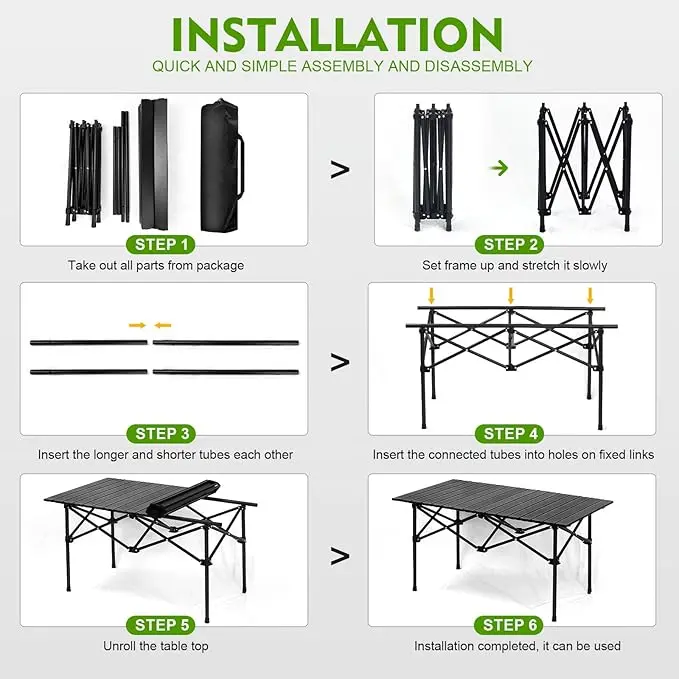 طاولة تخييم ألمنيوم فاخرة قابلة للطي، خفيفة الوزن وسهلة الحمل، مصممة لتوفير أداء عملي وثبات ممتاز في مختلف الأنشطة الخارجية، مع حقيبة حمل أنيقة لسهولة النقل والتخزين.