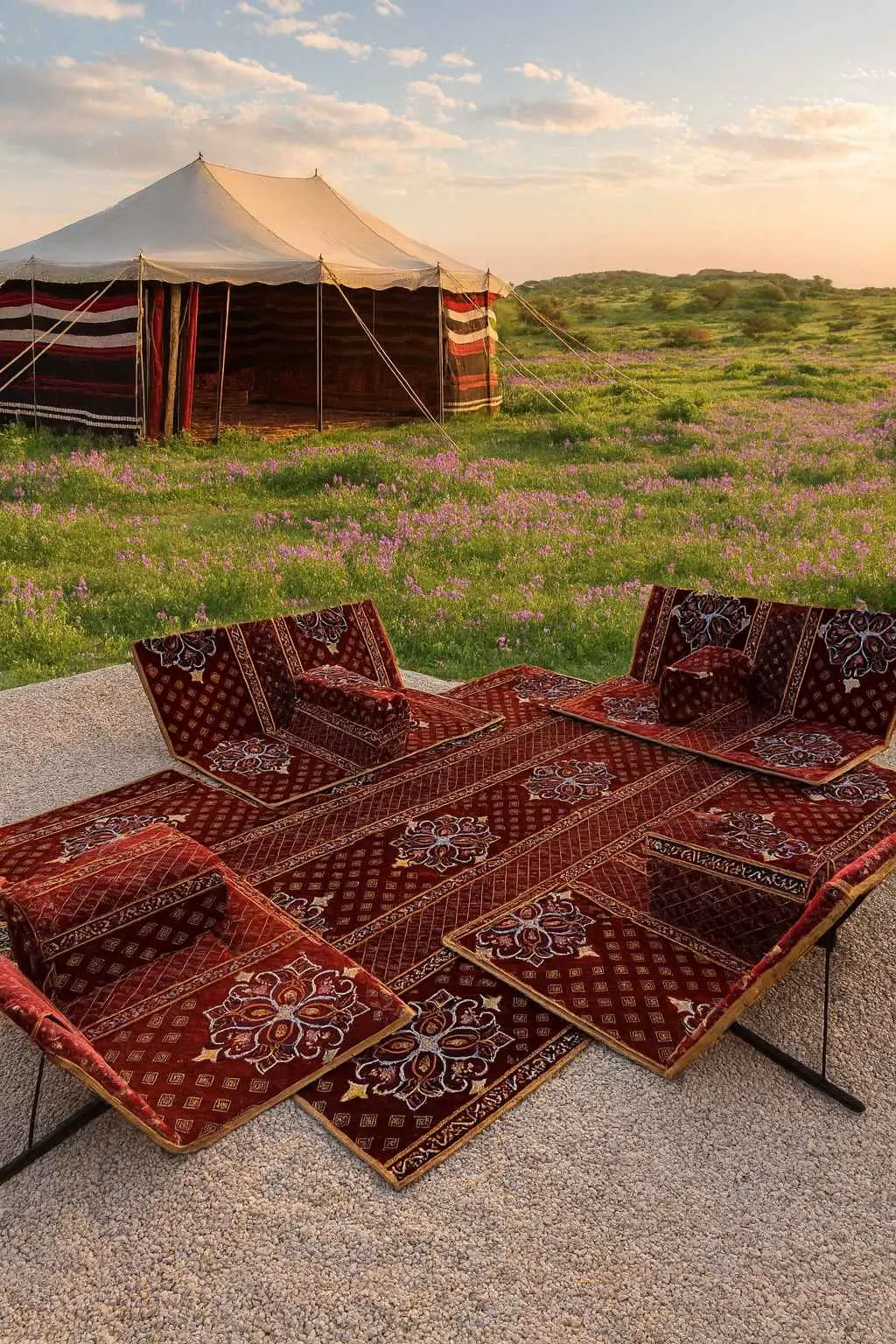 احصل على جلسة أرضية متكاملة تمنحك راحة مثالية في كل رحلة أو مخيم أو جلسة بر خفيفة. Designed للاستخدام اليومي في الصحراء، الحدائق أو حتى في المنزل، يأتي هذا الطقم بشكل عملي قابل للطي ليسهّل عليك التنقل والتخزين دون عناء.